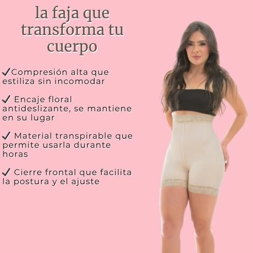 Nuestra faja está diseñada para alisar tu abdomen, definir tu cintura y eliminar esos pliegues que tanto incomodan, sin dolor ni presión excesiva.